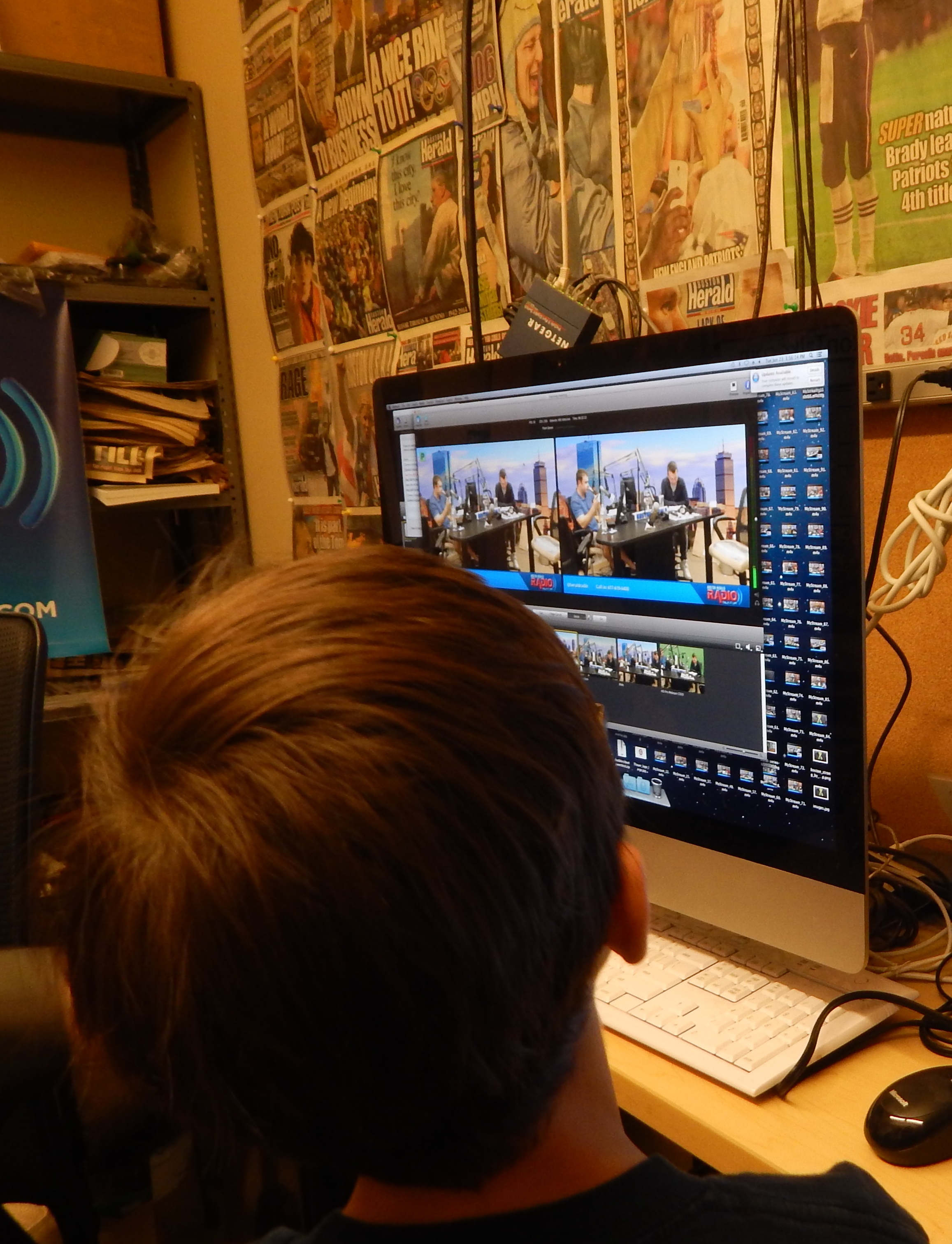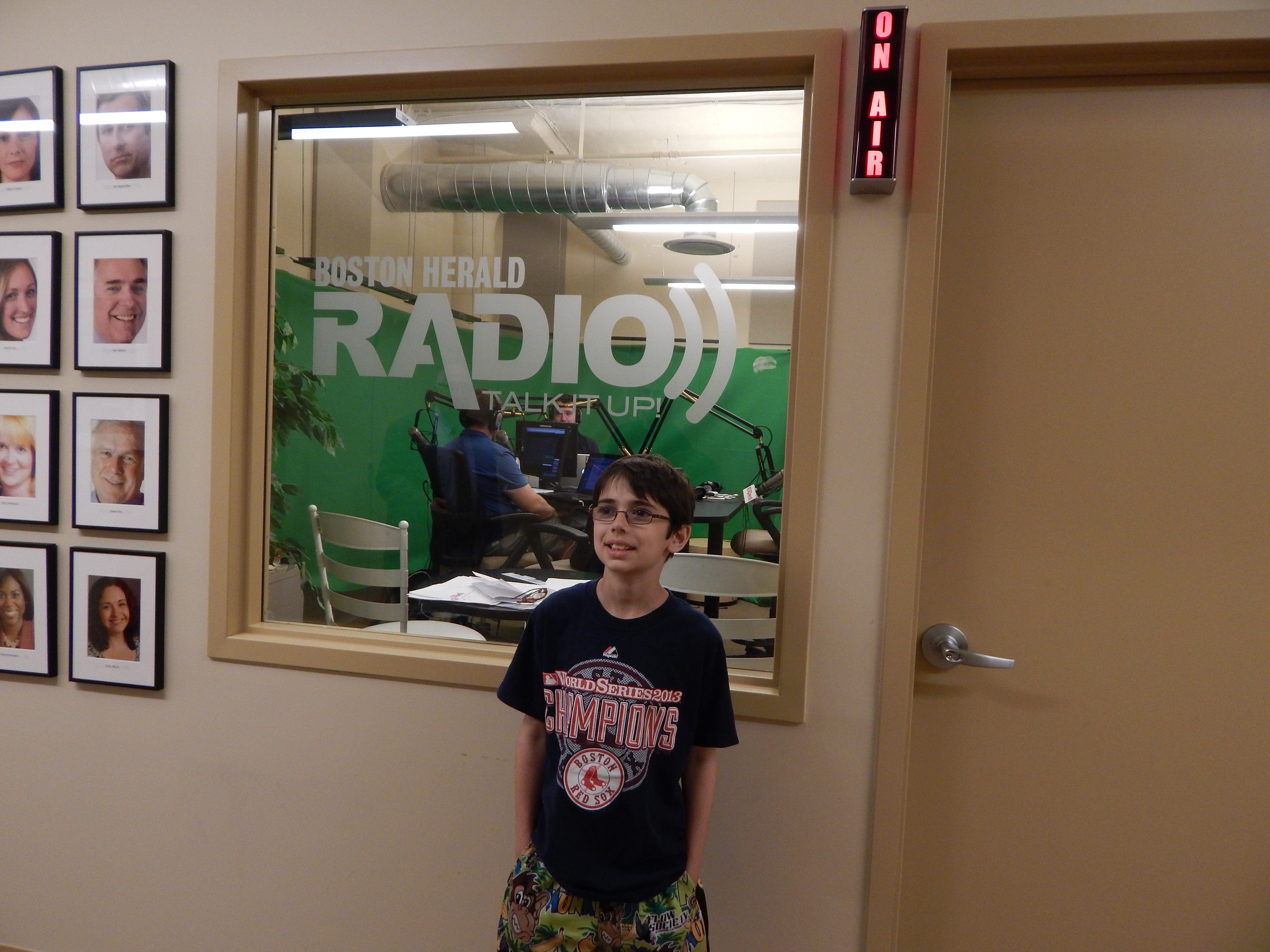 They let us in to the production room as well. I saw the Boston skyline background shown behind the radio hosts on a computer in place of the green screen. They were very generous and gave my brother and me Boston Herald Radio T-Shirts.