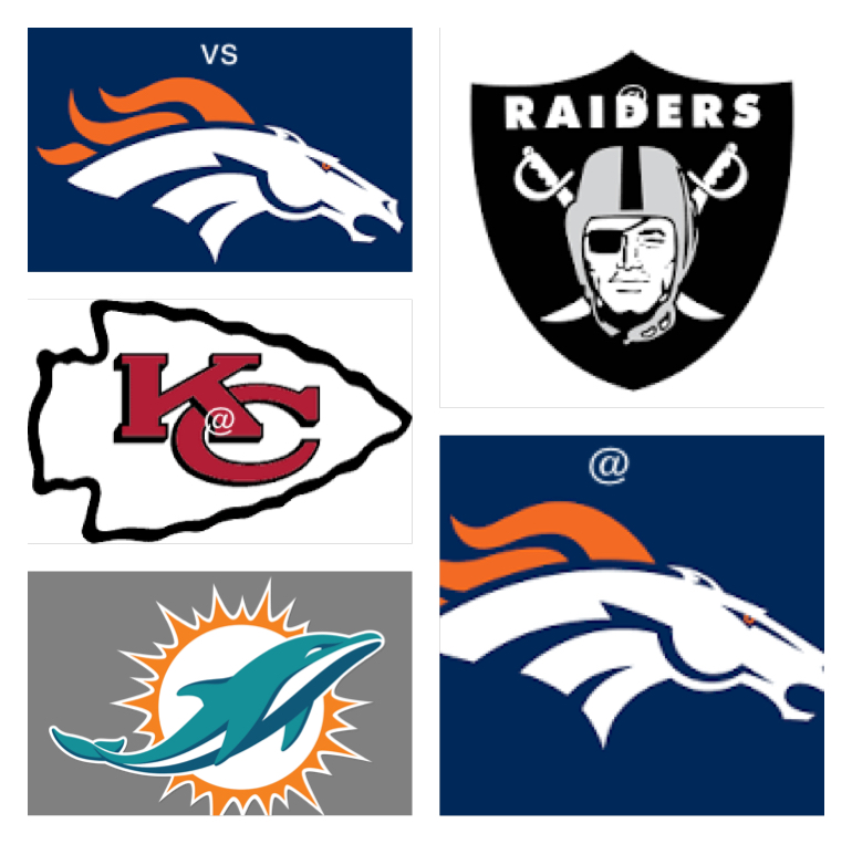 This schedule spells disaster. Any win over Denver is doubtful. Denver likely will dominate up until January.