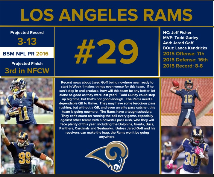 Football is back in LA! The Rams moved to the city in the off season. The NFL was desperate for an LA team, and this is a big move. This LA team is intriguing, but will they surprise people and thrive in a tough division? Todd Gurley, Jared Goff, Aaron Donald and many other key players on this team could be deciding factors. Today, we go over what areas are doing well, which areas need work, and what to expect of the 2016 Rams.