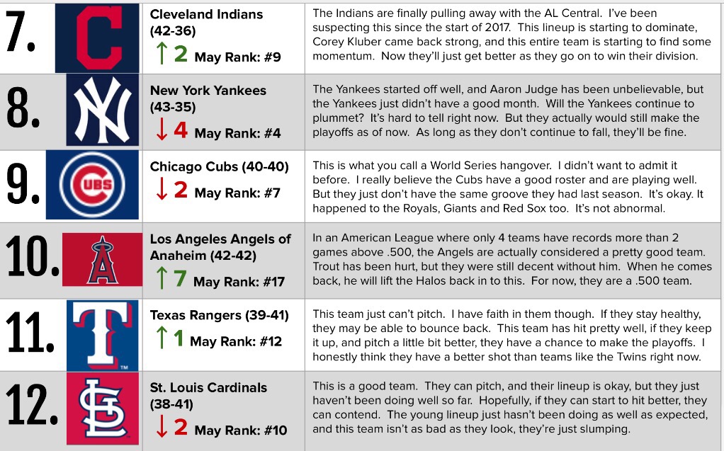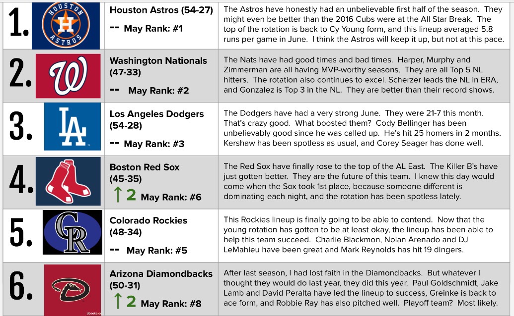 Welcome to my power rankings for June and the first half of the MLB season. The Astros have continued to dominate the league, and they take the #1 spot. Who stacks up behind them? Keep reading to find out.
