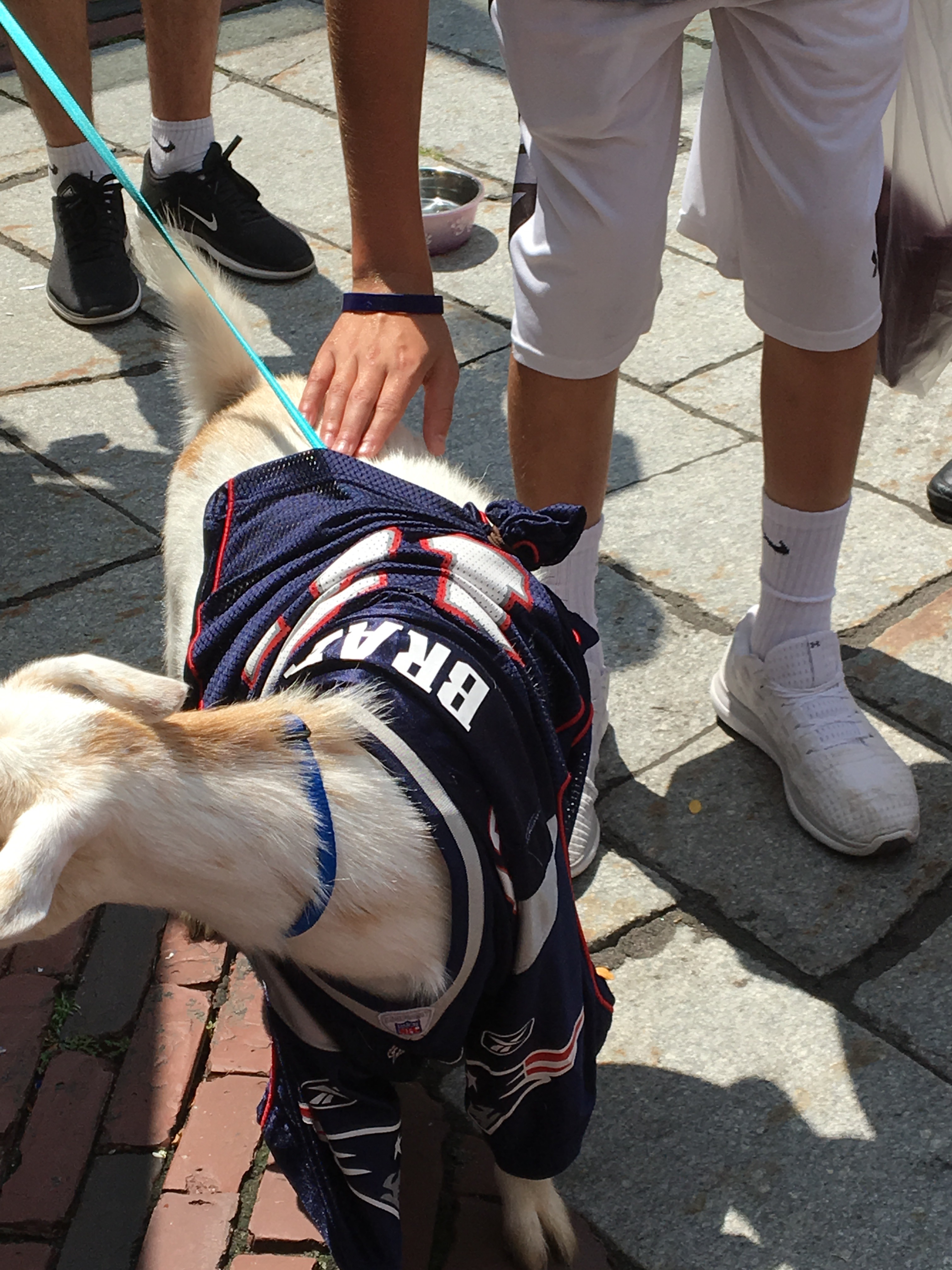 By the time I was done reading the paper, sports editor Rachel Fox was there and I spent the morning with her. She had a TV by her desk and I put on SportsCenter while she looked at what sports articles were going up on the website. At noon, I went with sports reporter Meredith Gorman to a birthday party for Tom Brady at Faneuil Hall. TB12 wasn’t there, but there was a goat with a Tom Brady jersey!