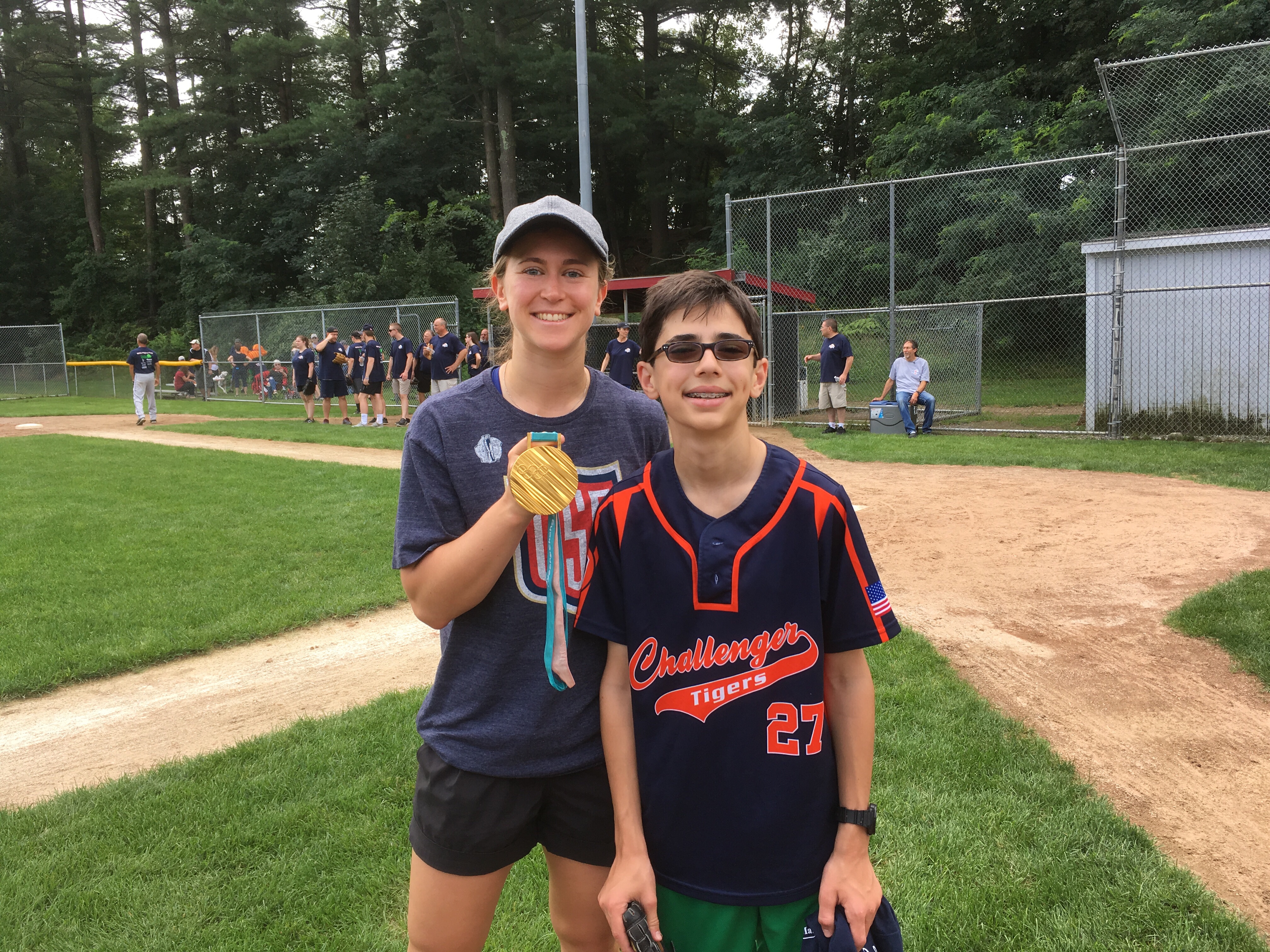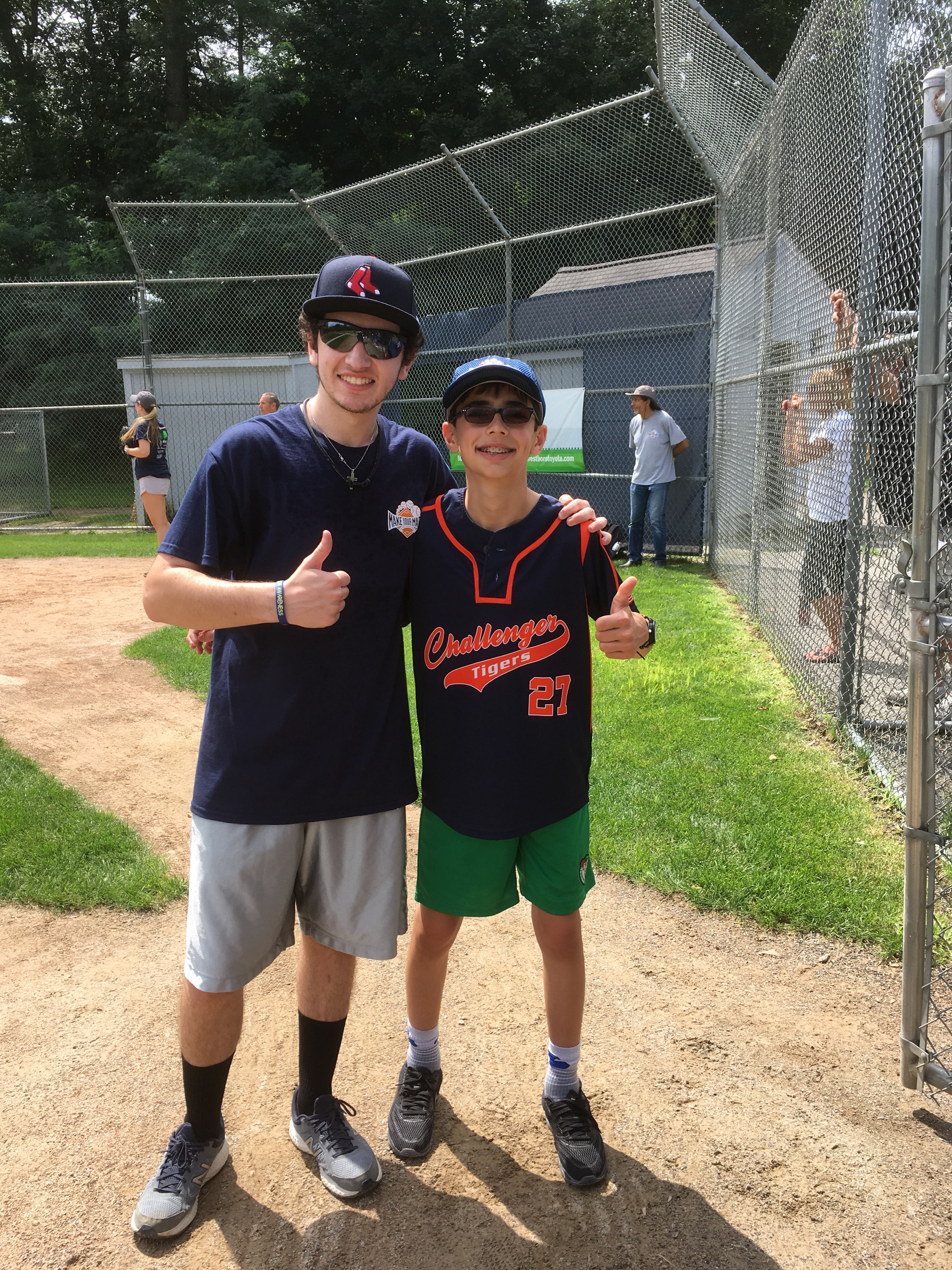 I had a lot of fun playing softball and even caught a hot line drive hit right to me at third and also made a few plays throwing to my dad at first. My teammates and I all got to bat twice, once each inning, so I was happy to get two hits. After I finished playing, I met up with one of my long time Challenger coaches, Sean Durkin, who has taught me so much over the years and he told me he was proud to see how well I played.