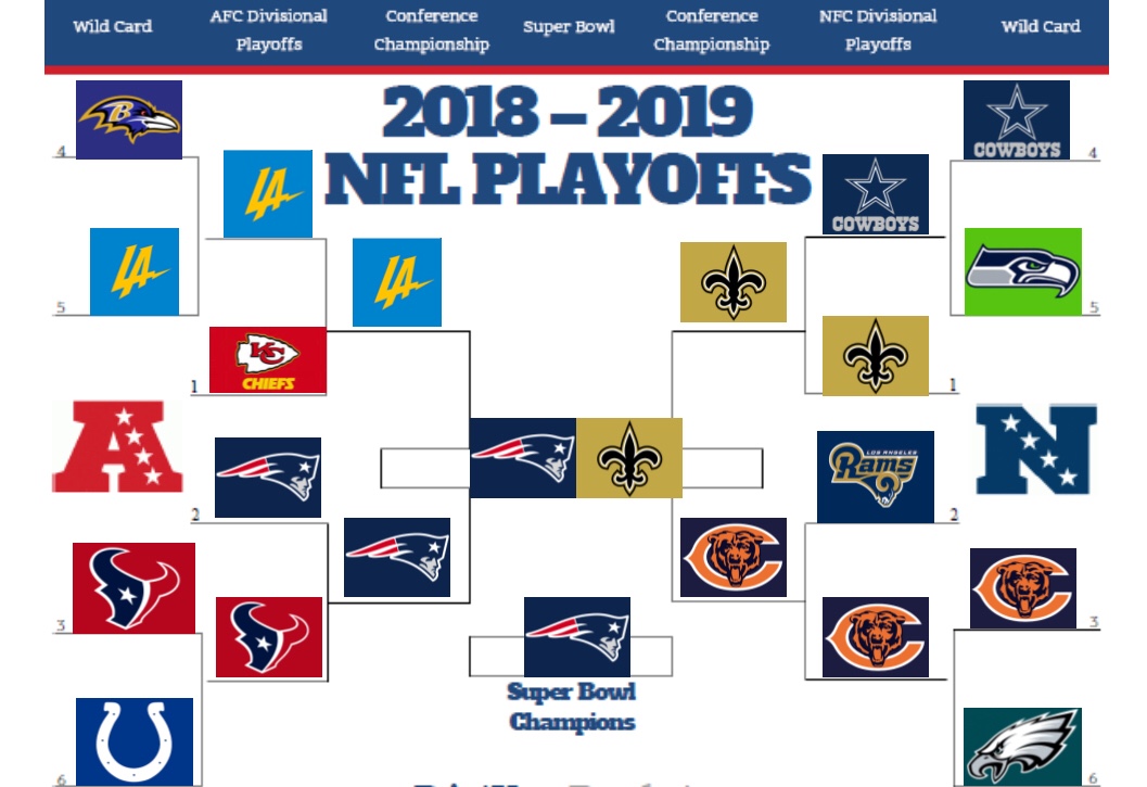 Welcome to my 2018-19 NFL Playoff Predictions. Today, I will show you my playoff bracket alongside score predictions and analysis for each game. Next week, I will update you with Divisional Round predictions unless all of this week’s games are predicted correctly. Below is my official playoff bracket: