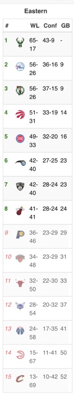 The Magic, Nets, and Heat will finish out the playoff bracket for the East with sub-.500 seasons. Nikola Vucevic and his young surroundings will put up another decent year, PG Kyrie Irving will earn his team a playoff spot despite the absence of Kevin Durant, and Jimmy Butler will give Miami the boost they need to make the playoffs.