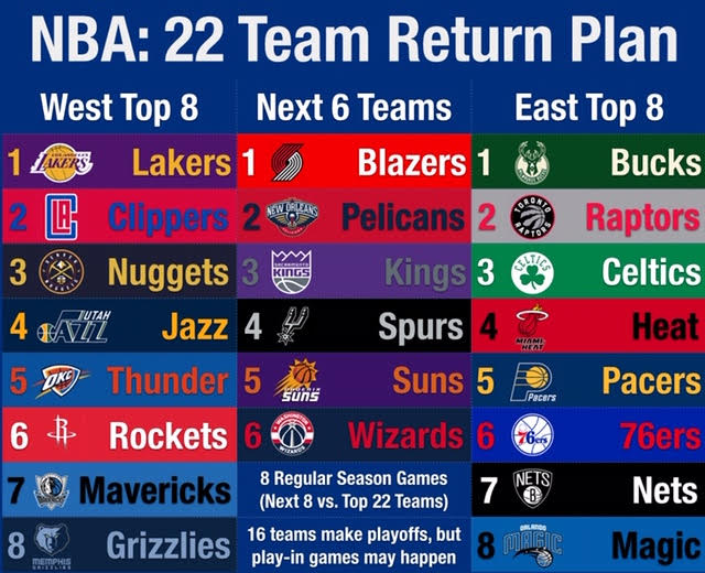 The NBA’s plan for a July 31 return. Below I have outlined what new information we have received since my last update, what I think of this plan and what I think the return could look like logistically.
