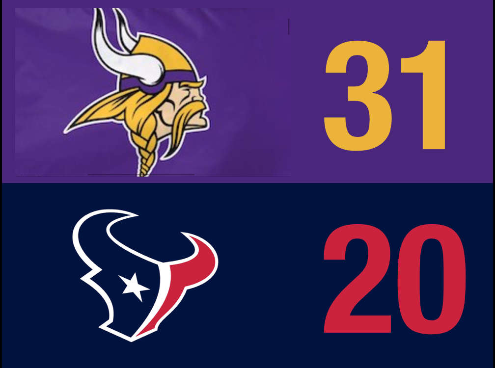 ![]() | QB Deshaun Watson and WR duo should impress against this Minnesota secondary. However, I’m expecting a Vikings bounce back on the offensive side of the ball. QB Kirk Cousins will show he’s capable of leading this team to victory, utilizing RB Dalvin Cook and his own WR duo of Adam Thielen and Justin Jefferson. |