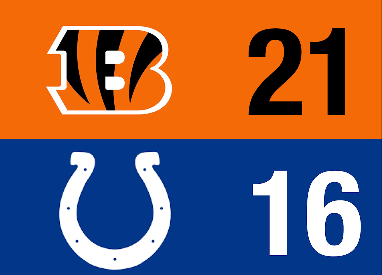 This Bengals D is definitely better than it was in 2019, especially with star DT Geno Atkins back. Expect them to put pressure on QB Philip Rivers and his receivers, forcing Rivers to throw repeated checkdowns to the RBs. Meanwhile, I think QB Joe Burrow has enough weapons to lead the Bengals to victory in Indy despite o-line concerns.