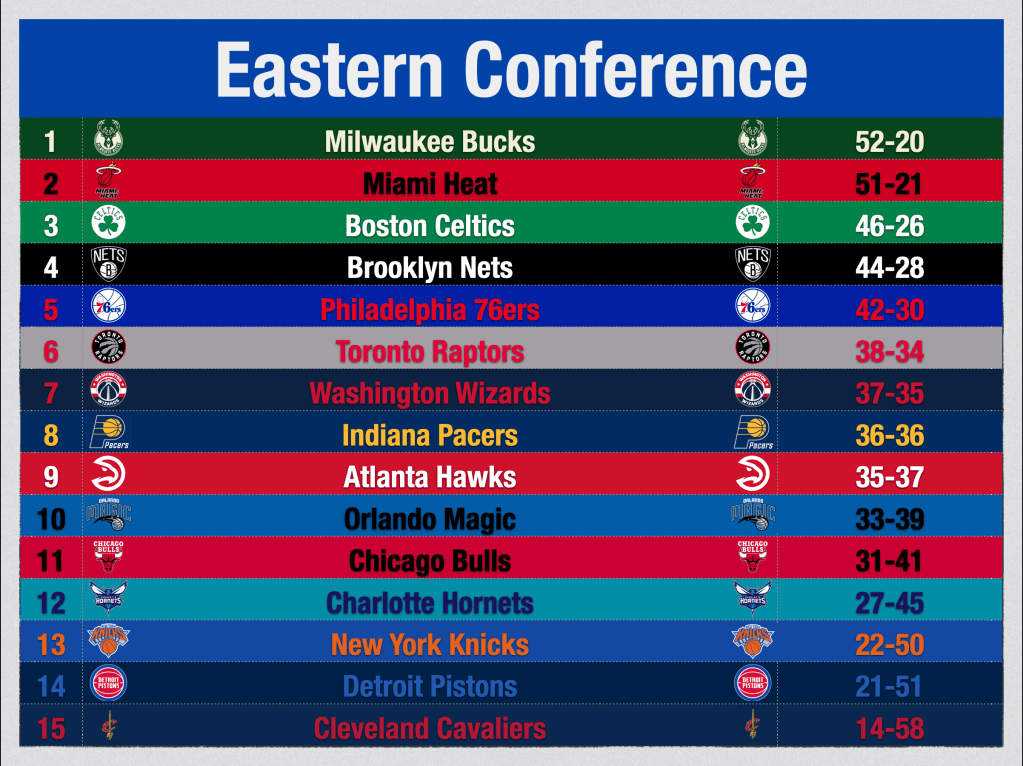 I had originally thought the Bucks, Heat, and Celtics would all be neck and neck for the #1 seed. With PG Kemba Walker missing time, I can’t see Boston getting the 1 seed, and I have them as a 3 seed. All three of these teams are very deep, but built around a superstar: Giannis Antetokounmpo for the Bucks, Jimmy Butler for the Heat, and the young stud Jayson Tatum for the Celtics. Yes, Tatum has reached superstar level, and he’ll prove it this year.