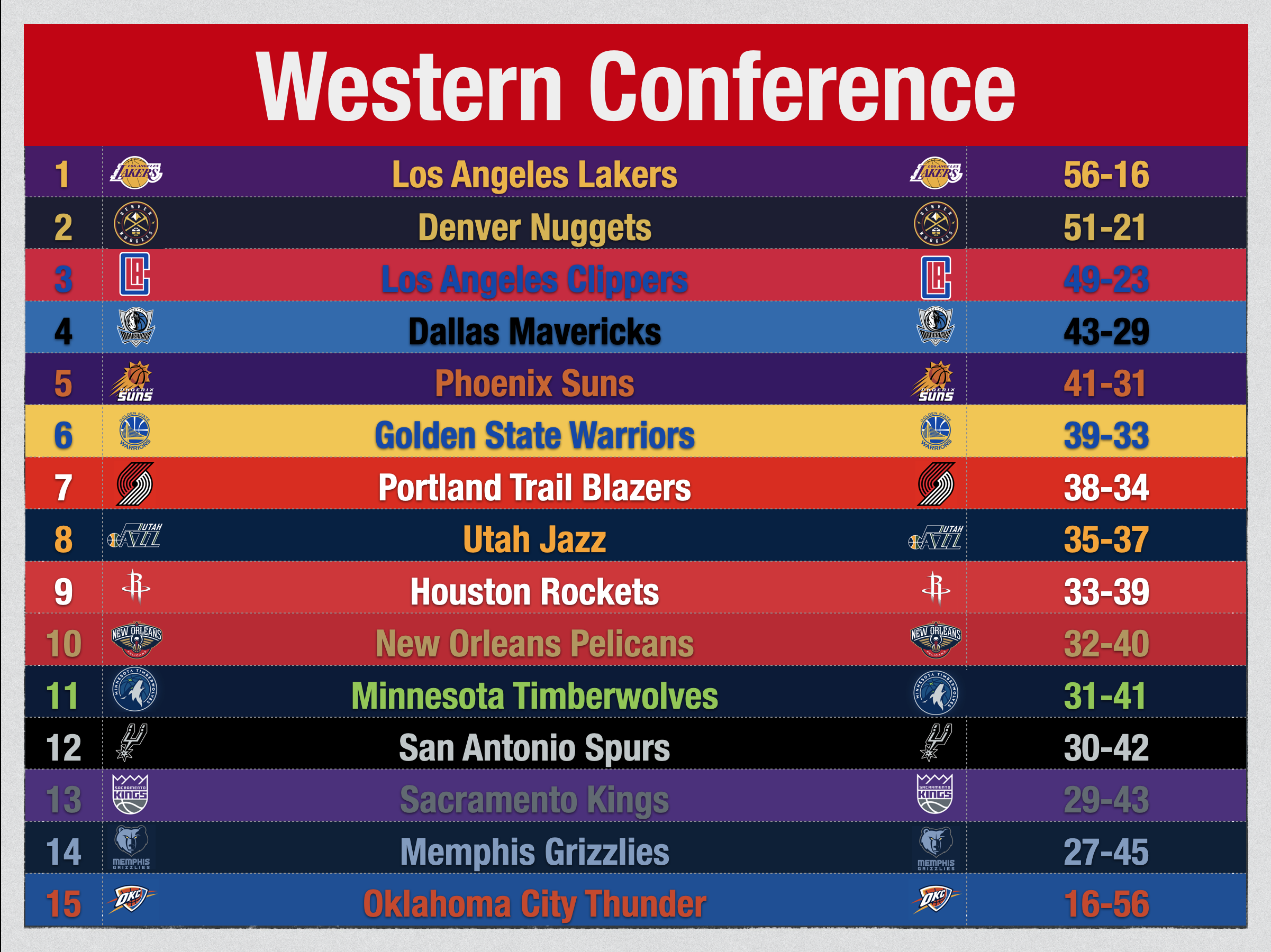 In the West, the 2 through 7 seeds could end up in any order. I think some upsets will happen here, and teams like Golden State or Portland could make a run even with a low seed. However, I think the Lakers are the clear front runner in the Western Conference. Even the Clippers duo of Kawhi Leonard and Paul George won’t stack up with LeBron and AD in a playoff matchup.
