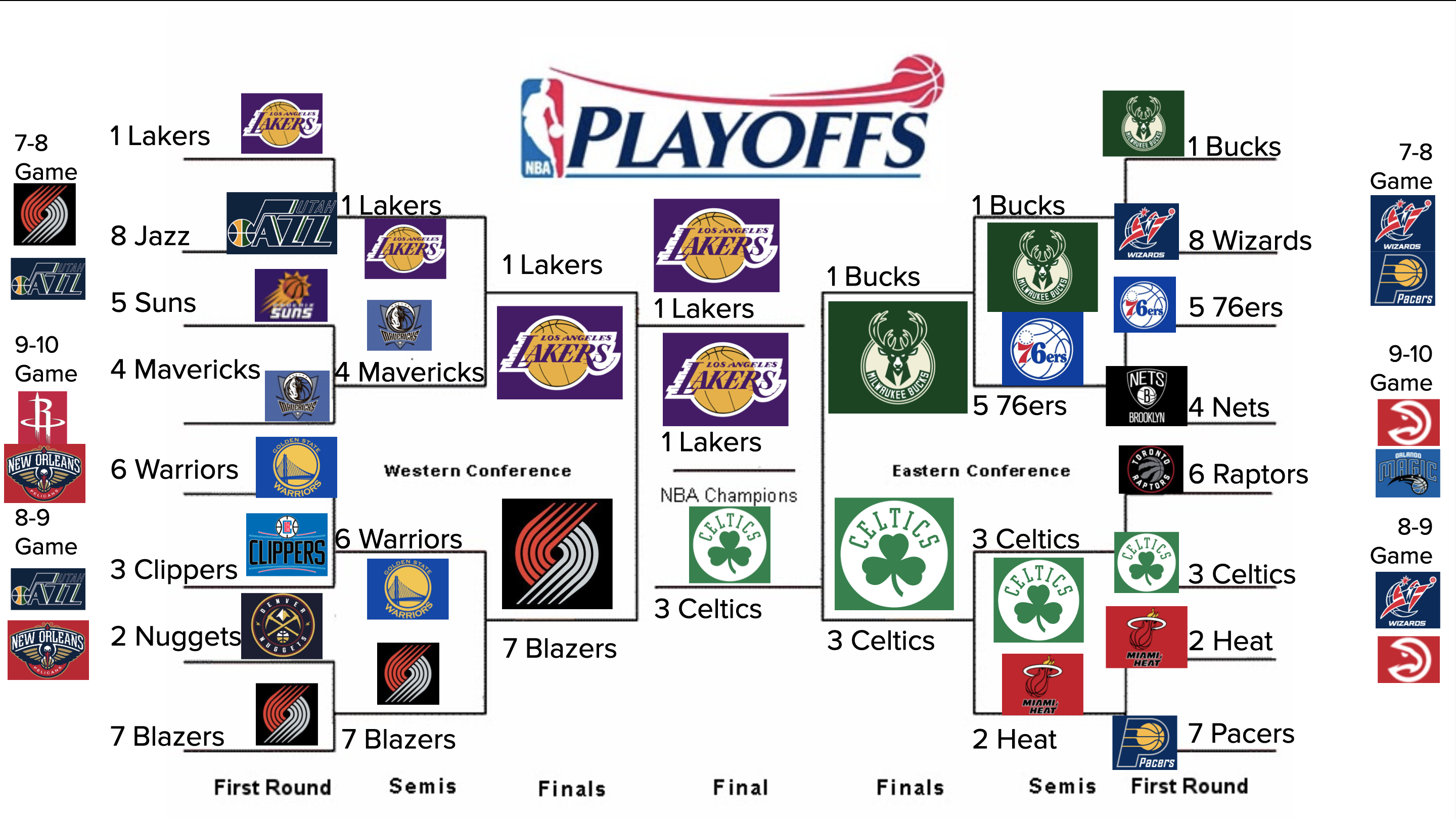In the East, I have the Celtics making a playoff run with Kemba Walker back. A trio of Tatum, Kemba, and Jaylen Brown can compete with any team in the conference, and possibly even lead Boston to an 18th banner. They’ll easily take down Toronto and outplay the Heat and Bucks in order to make the NBA Finals. I think the Pacers will end up with the 7 seed after beating Washington in the play-in, but it doesn’t matter as they should most likely fall short to the Heat and Bucks. The only first round series in the East that I think will be competitive is the 4-5 series between Brooklyn and Philadelphia.