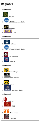 Liberty, Montana State, Colgate, UMBC, and Jackson State fill out the rest of this region as I think they would win their conference tournaments based on what we’ve seen so far. Liberty was impressive at the Space Coast Challenge and has followed it up with a strong Atlantic Sun showing, so they get the highest seed of these teams. Montana State and Jackson State are undefeated in conference play, while Colgate and UMBC are close to it, so they should all get auto-bids as well.