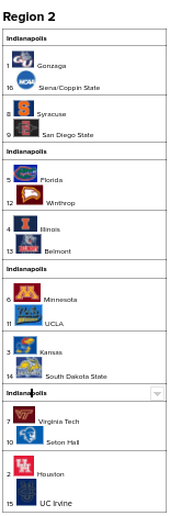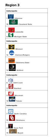 Seton Hall is 9-6, but if they just finish their games a little stronger they have the potential to be a lot better. They’ve come within minutes of taking down Oregon, Louisville, and even Villanova. I have them grabbing the 10 seed, and I have Belmont, South Dakota State, UC Irvine, Siena, and Coppin State rounding out the region with at-large bids. Belmont is 16-1, and South Dakota State upset Utah State, so those two have the highest seeds of the bunch.