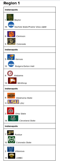 Texas Tech has posted a rather strong season in the Big 12 with Mac McClung in the mix. In this competitive of a conference, I think the Red Raiders are deserving of the 1 line. Illinois started off slow, but they have proven themselves as a title contender. Ayo Dosunmu led them past Iowa, and their only notable bad loss has come against Maryland, a team that has been wildly inconsistent and upset top teams despite losing to lower tier ones.