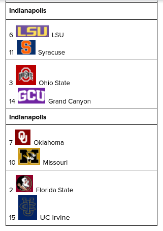 Syracuse had a rather underwhelming start to the season, but topped UNC and Clemson this week to give their resume a major boost. They secure one of the last four byes, while Ole Miss and Boise State will have to meet in the First Four. I have Abilene Christian, Grand Canyon, and UC Irvine winning their conferences to join UMass Lowell in rounding out this region.
