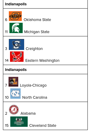 I have Missouri taking on a 7 seed that has also fallen down the bracket, Oklahoma. The Sooners were among the Big 12’s elite teams until a loss to Kansas State that was only the beginning of a 4 game skid. Oklahoma is now just 14-9 and seventh place in the conference. In the 8-9 game, I have McKinley Wright-led Pac-12 contender Colorado and A10 contender St. Bonaventure. Both these teams have been competitive in their conference, but being competitive in a conference like the A10 isn’t the same as being competitive in the B1G or Big 12.
