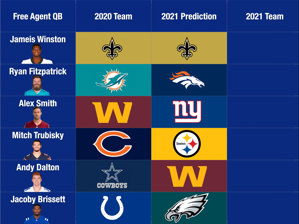 The NFL draft is the best route for teams who are in need of QBs, but some teams will settle for a free agent or bring in a free agent QB as a backup or bridge.