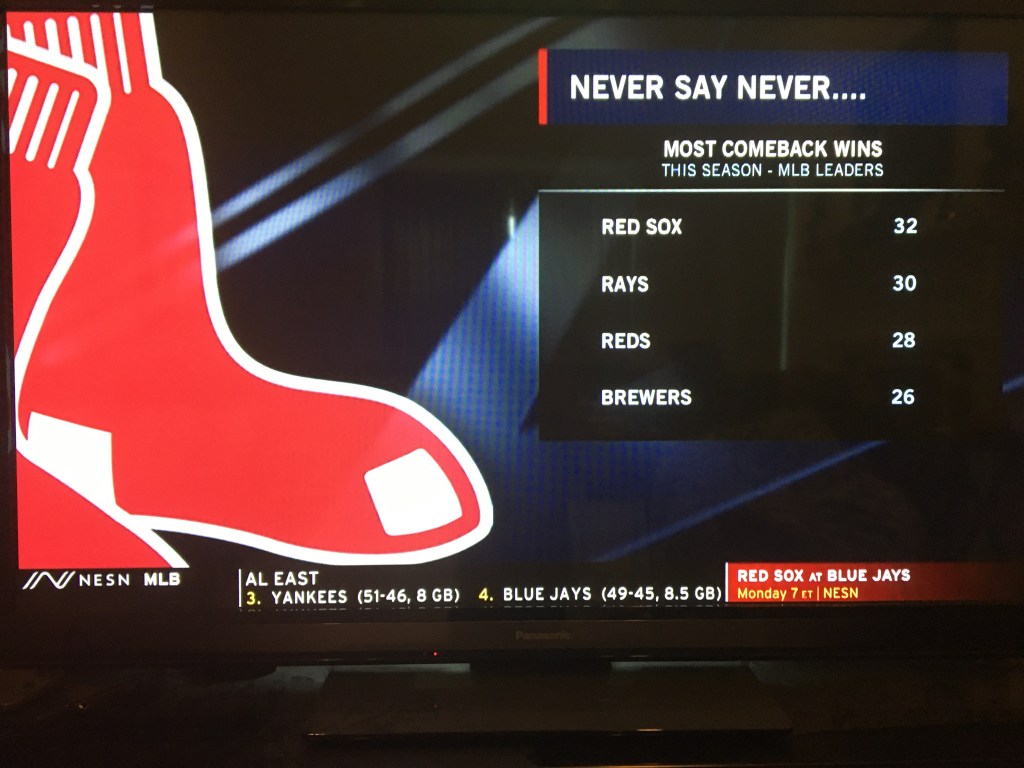 The Red Sox lead the MLB in comeback wins, with today being their 32nd. Even with all these comebacks, today was probably the most impressive of the entire season.