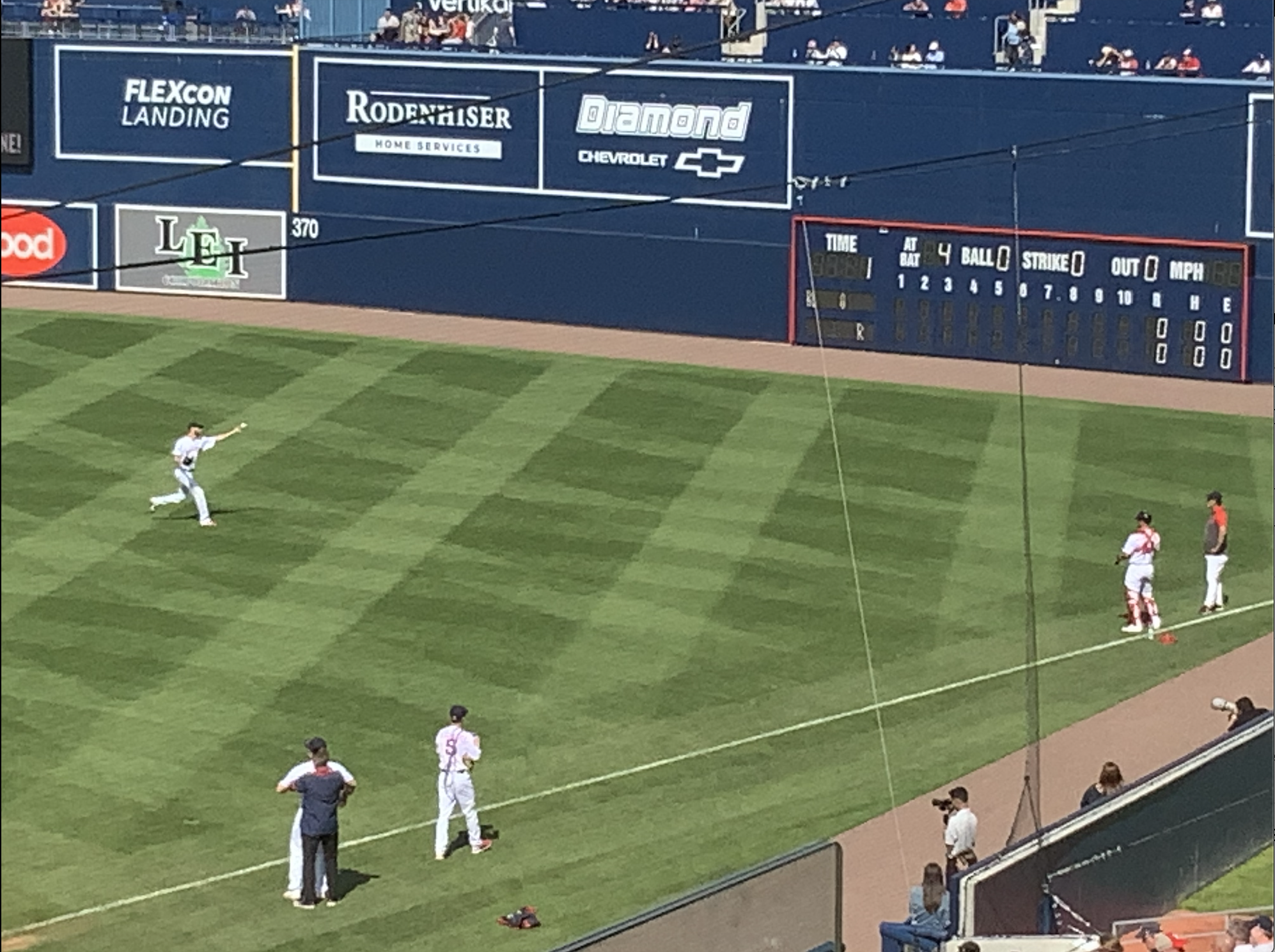 After covering BP and the pregame ceremony, I found a spot behind home plate next to the press box to watch the game. I was able to see Sale’s warm-up in right field in front of the Worcester Wall, and the game began shortly afterwards.