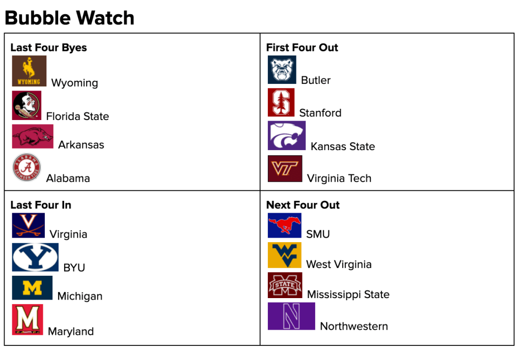 All of these teams come into the final few weeks of the regular season with something to prove. A good number of them have had extremely mixed resumes, with brutal losses in addition to huge wins. The best way for them to secure their NCAA Tournament bid would be winning the conference tournament, which would add several more big wins to their resume and secure them a spot. However, for those of them play in extremely competitive conferences, it will come down to how they fare against the top contenders on their schedule. Teams here like Arkansas, Michigan, Butler, and SMU do have a lot of potential if they make the tournament, but they’ll first have to prove themselves down the stretch.