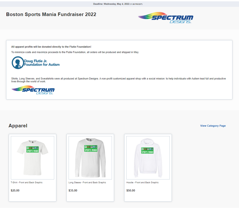 For the second year in a row, Boston Sports Mania apparel is being sold for a limited period of time. All profits will go to the Doug Flutie Jr. Foundation for Autism. The Flutie Foundation is an organization who helps people and families affected by autism live life to the fullest.