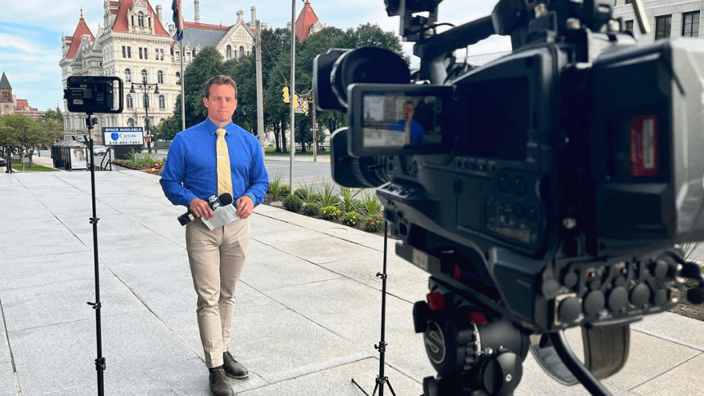 Since graduating from Ithaca College, Tom Eschen ’11 has held many different positions in broadcasting. Recently, he accepted a job with CBS6-WRGB. (Photo via Brian Purcell)