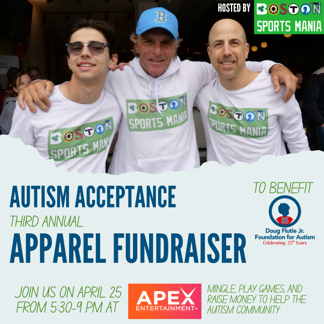 Happy Autism Acceptance Month! For the third straight year, I will be selling merchandise with my Boston Sports Mania logo to raise money for the Doug Flutie Jr. Foundation for Autism, who has been helping people and families affected by autism live life to the fullest for 25 years now.